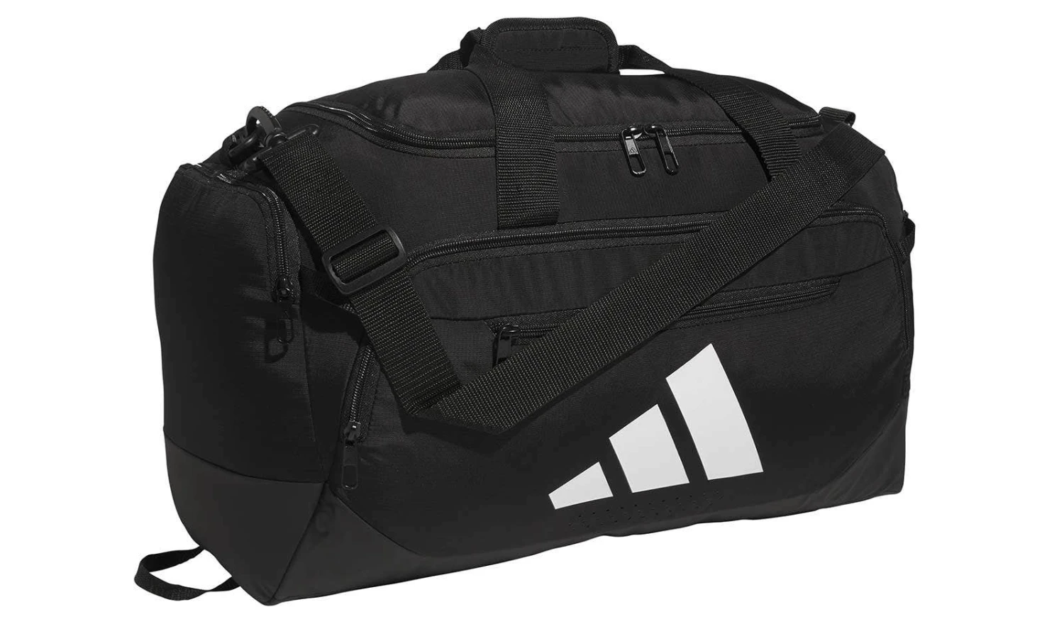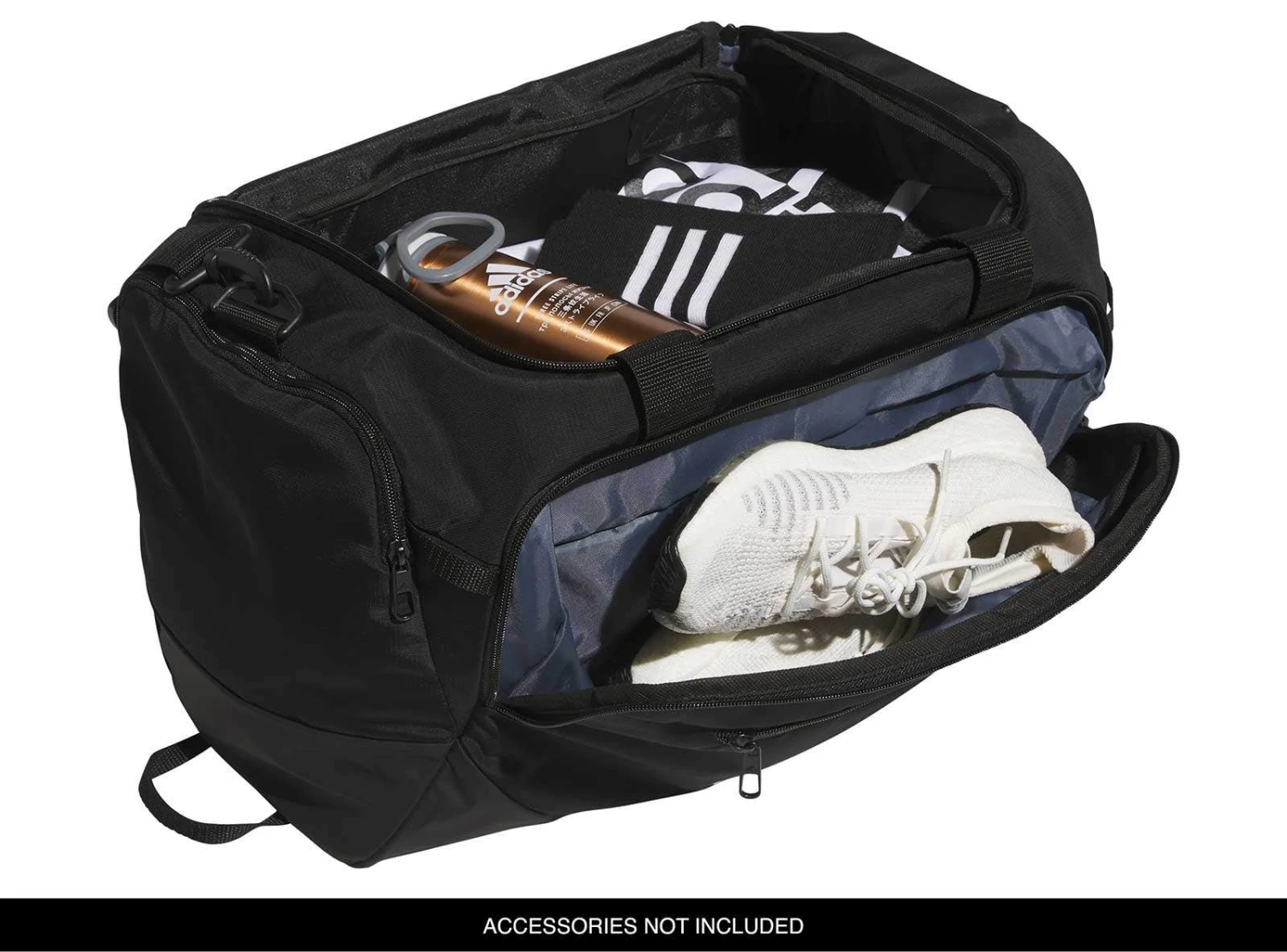 The Adidas Defender V Small Duffle Bag is built for athletes on the go, whether to practice or a weekend travel tourney. Durably built to resist wear and tear, and a handy luggage trolley strap for travel. Multiple zip pockets and a large main compartment hold all your gear. Webbing attachments allow you to clip stuff like keys or a water bottle.