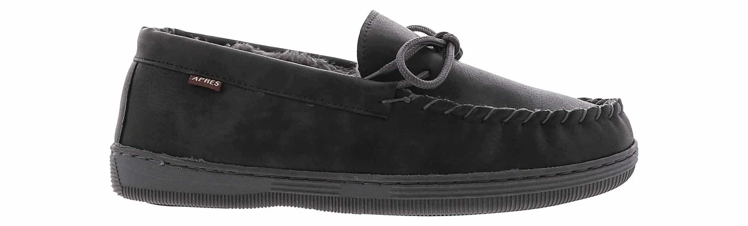 Tis’ the season to get comfy and cozy in the Apres Classic Moc Men’s Wide-Width Slipper. This style features a faux leather upper and faux fur lining with a cushioned footbed. The durable outsole allows you to wear these indoors and outdoors. What are you waiting for? Go get your Apres Classic Moc Men’s Slipper and start getting cozy!
