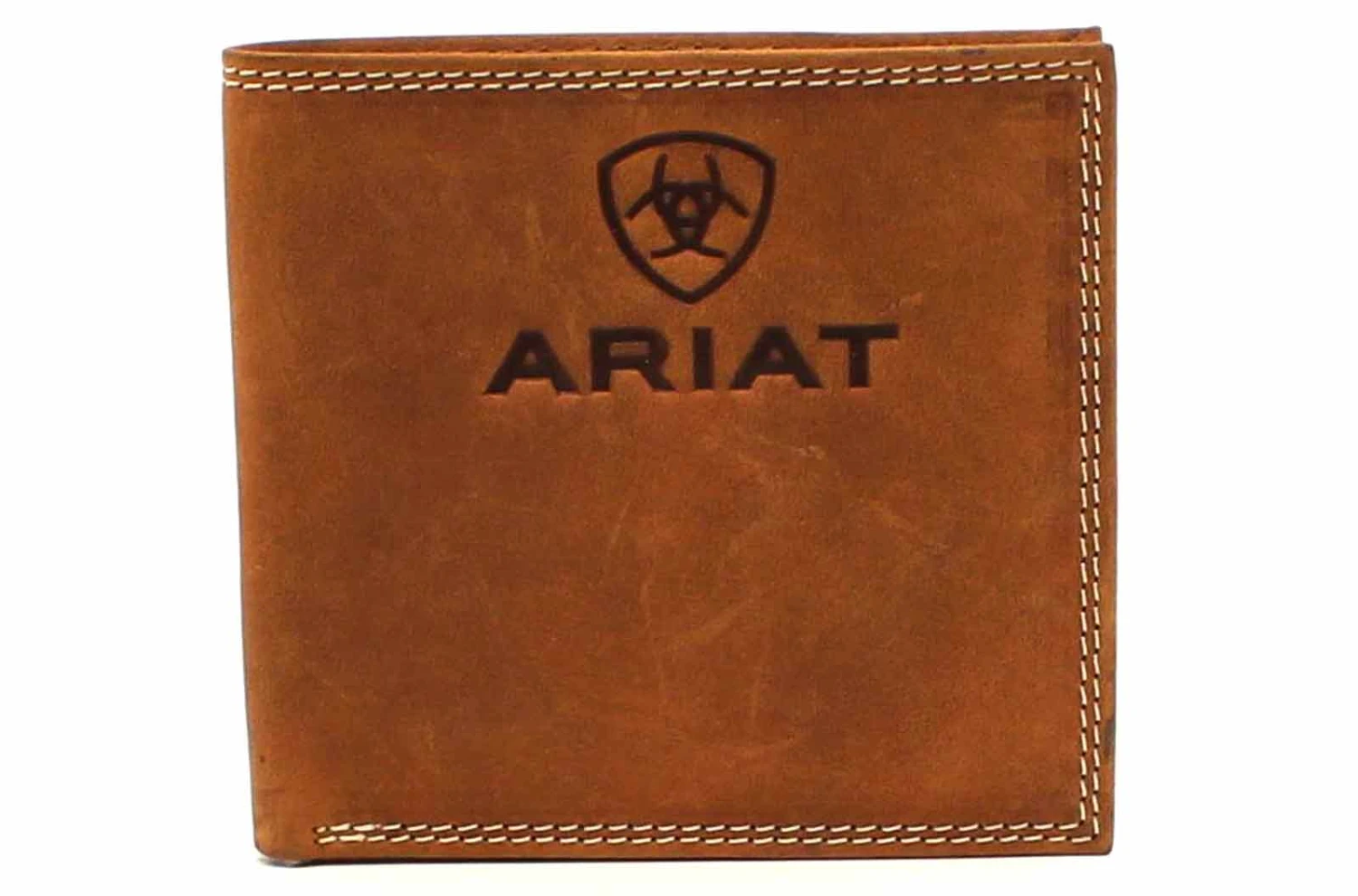 Stay organized with this oversized bifold style Ariat wallet by M&F Western Products. Genuine leather with contrast double stitching and embossed Ariat logo and shield at the top of the wallet. Features multiple compartments for your credit cards, cash and ID.