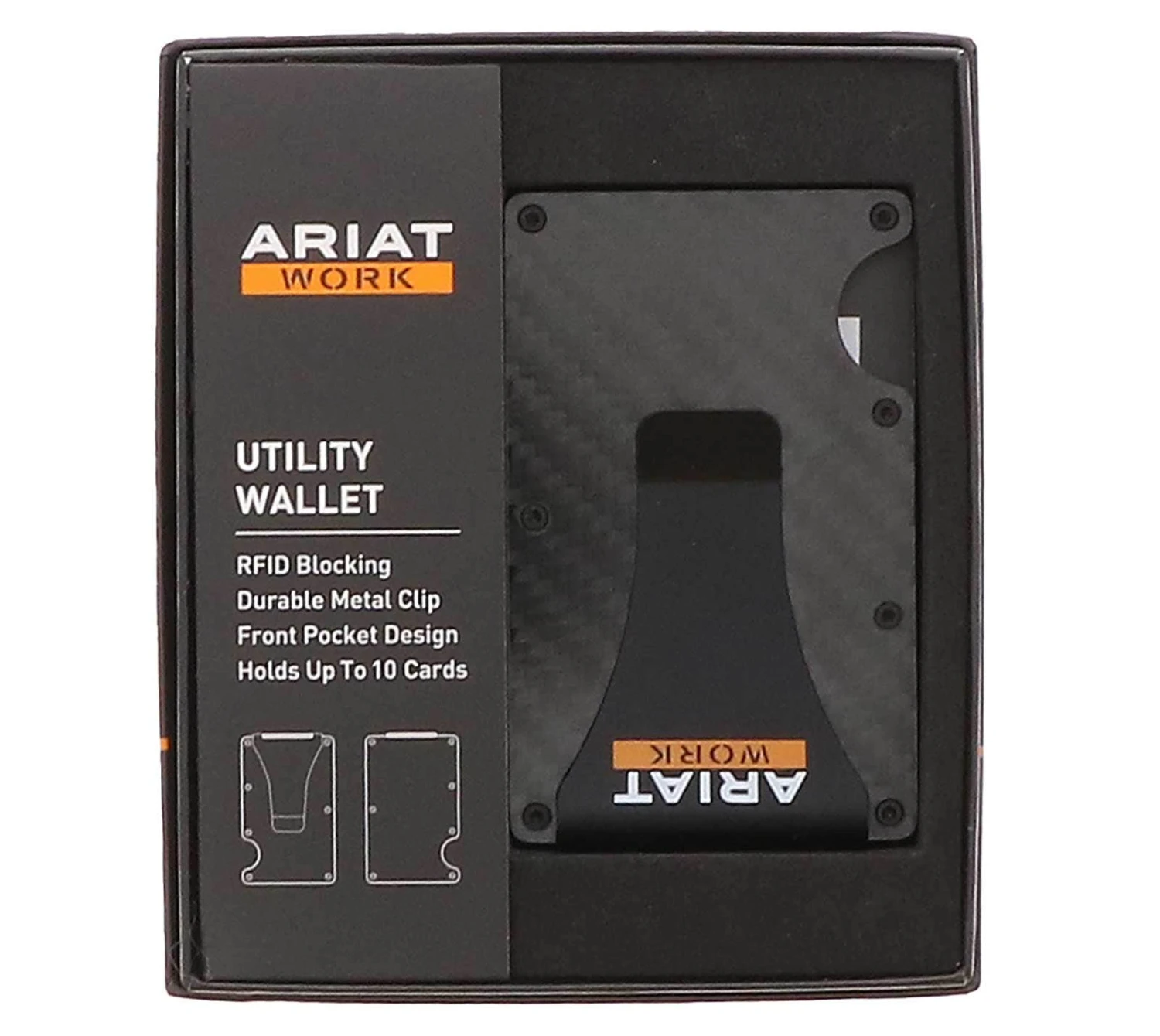 Keep your money and cards secure and compact with the Ariat Work Men’s Utility Wallet, designed for front pockets. Made with durable metal, this utility wallet features a money clip to hold cash and can store up to 10 cards.