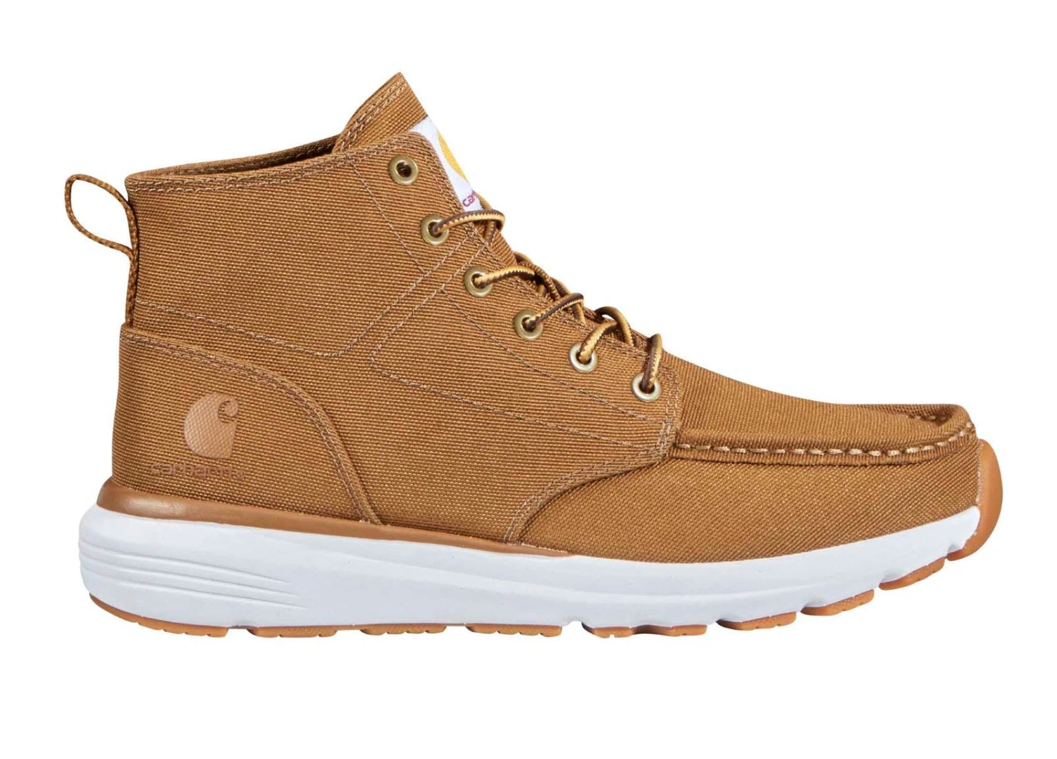 The Carhartt Haslett Moc Chukka Women’s Soft Toe Work Boot has your back. These lightweight boots feature exposed stitching, canvas upper, and lace-up closure. The sweat-wicking lining keeps your feet dry and fights odors. The cushioned insole is shock-absorbing, while the padded collar offers extra cushioning. The rubber outsole is slip resistant while also providing lightweight comfort. The Carhartt Haslett Moc Chukka Women’s Soft Toe Work Boot will take your workday to the next level.