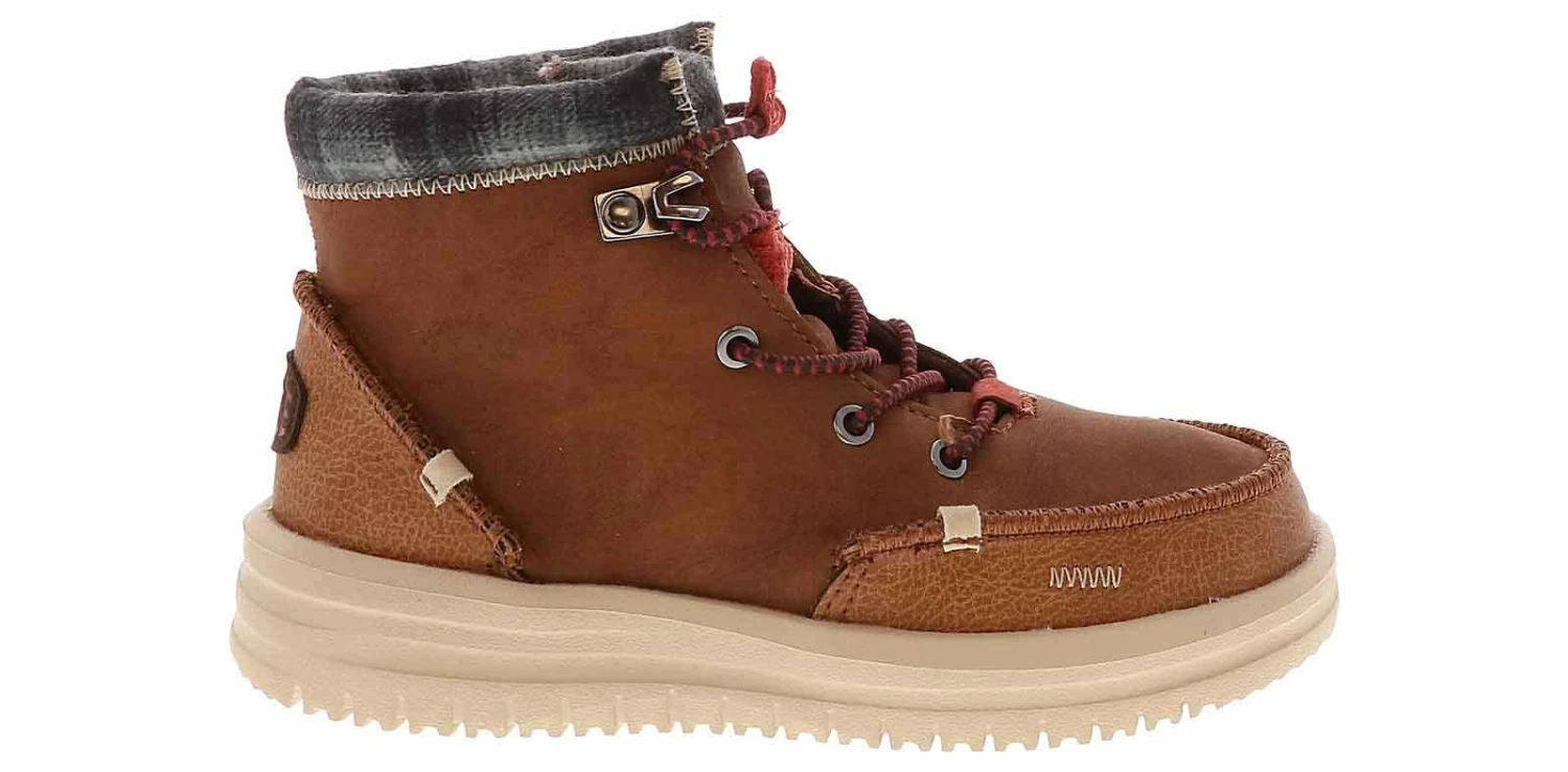 Perfect your little ones warm style with the HEYDUDE Bradley Toddler Boys’ (5-10) Comfort Boot! This comfortable slip-on boot features a soft leather upper and a cushioned insole for optimal support. The lightweight outsole and warm lining ensure ease in every stride. Start his adventures in the HEYDUDE Bradley Toddler Boys’ (5-10) Comfort Boot!