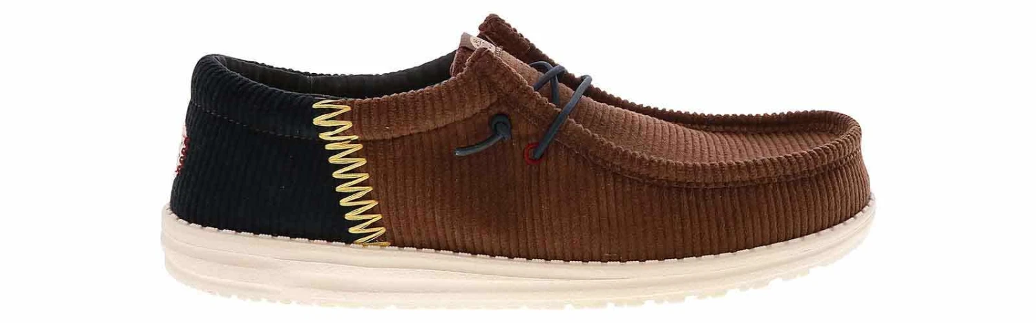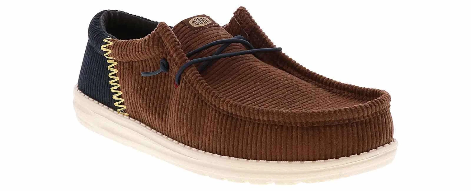 Dress casually and cozy with the HEYDUDE Wally Funk Corduroy Men’s Casual Shoe! This soft corduroy upper style features an easy slip-on-and-off system with no-tie elastic laces for a more customized fit. The lightweight outsole and lightly padded collar promise gentle steps when you wear the HEYDUDE Wally Funk Corduroy Men’s Casual Shoe!