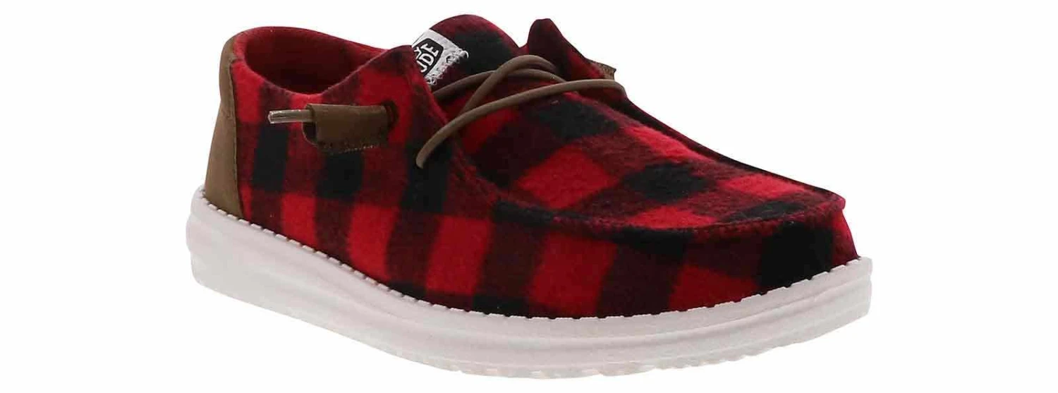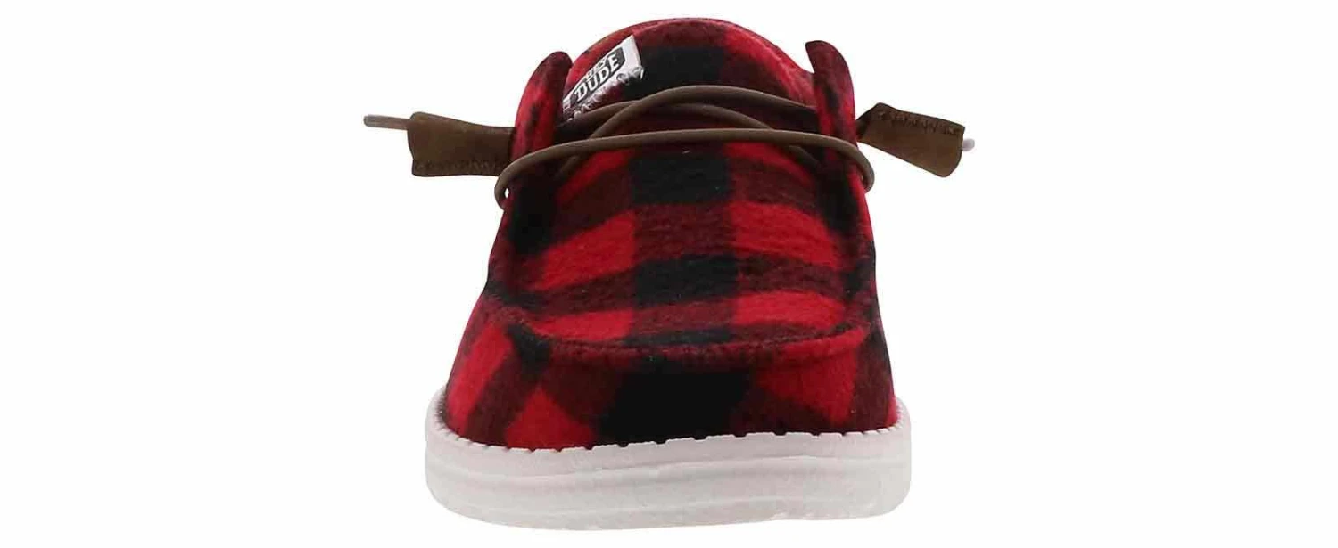 Get in the spirit this season with the HEYDUDE Wendy Buffalo Women’s Casual Shoe! This slip-on casual shoe is perfect for snuggling up next to a fire or running holiday errands. The no-tie elastic laces and cushioned insole ensure secure and comfortable wear while you embrace the buffalo patterned upper. You will love the HEYDUDE Wendy Buffalo Women’s Casual Shoe!