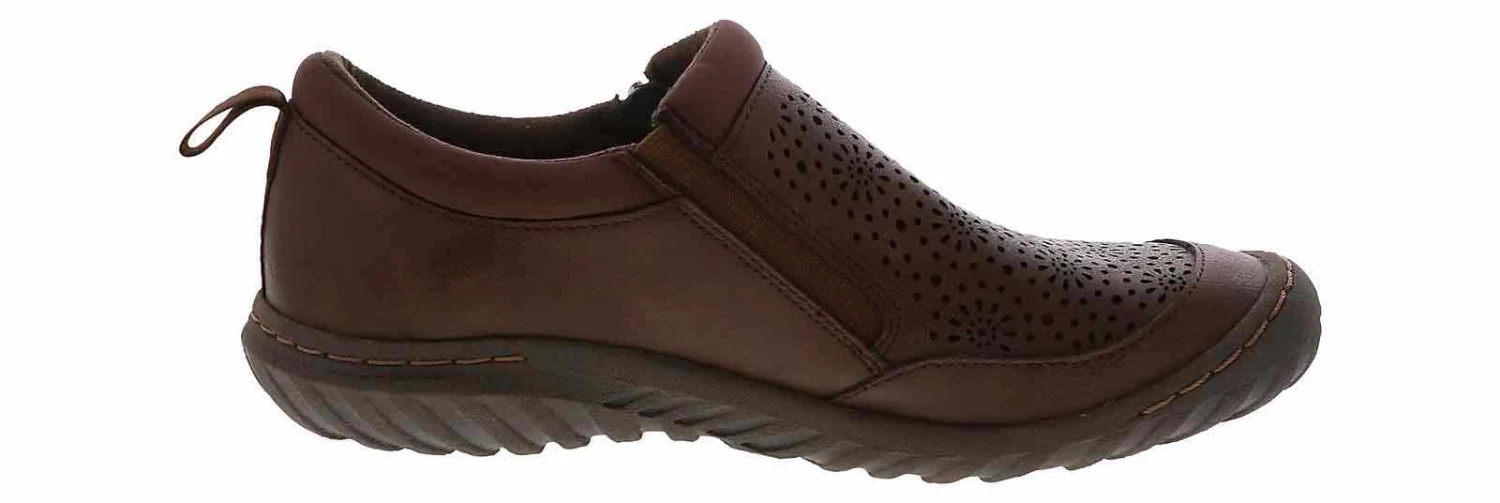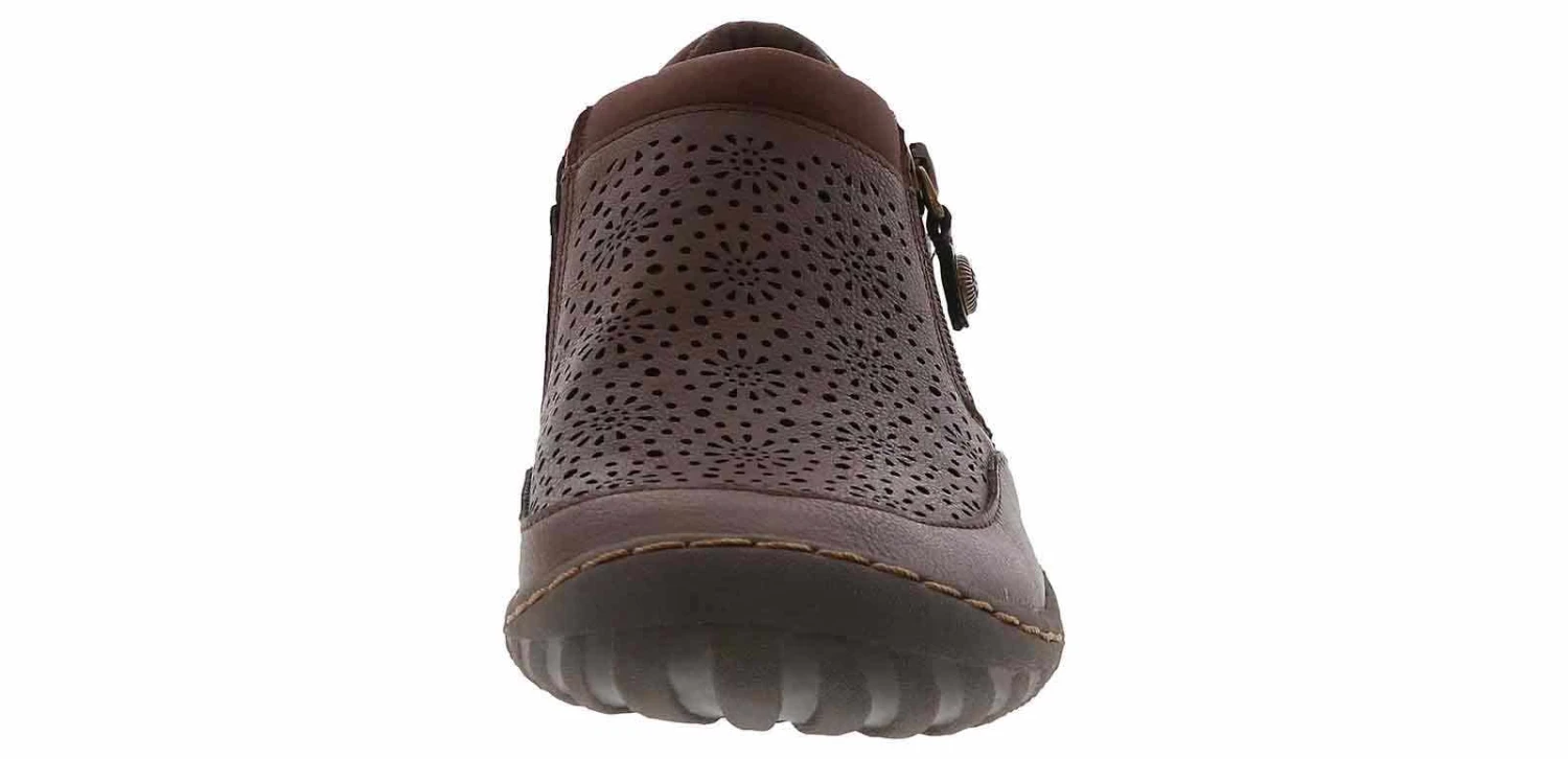 Experience unparalleled comfort and style with the JBU Avery Women’s Comfort Shoe! This unique style keeps class in mind with its flower-shaped perforations and sleek brown upper. The zipper closure ensures a secure fit, while the memory foam insole optimizes relaxation. Elevate your fashion game with the JBU Avery Women’s Comfort Shoe!