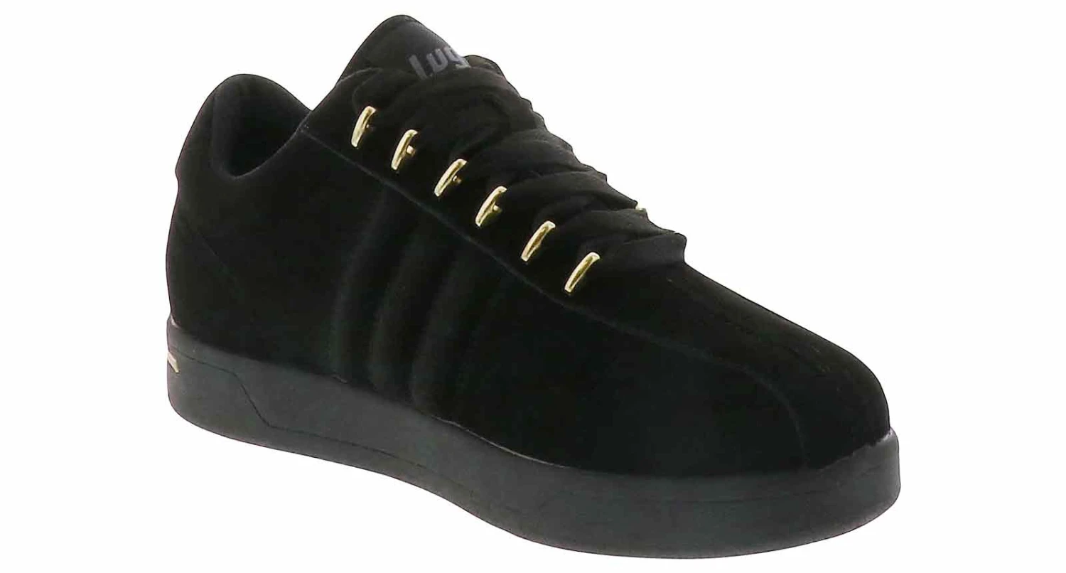 Black and gold have never looked better with the Lugz Legacy Men’s Casual Sneaker! The round-toe and lace-up sneaker come built with a synthetic leather upper and a durable rubber outsole. The lightly cushioned insole and padded collar give this casual style the right amount of comfort for all-day wear. You will keep it simple and fresh by wearing the Lugz Legacy Men’s Casual Sneaker!