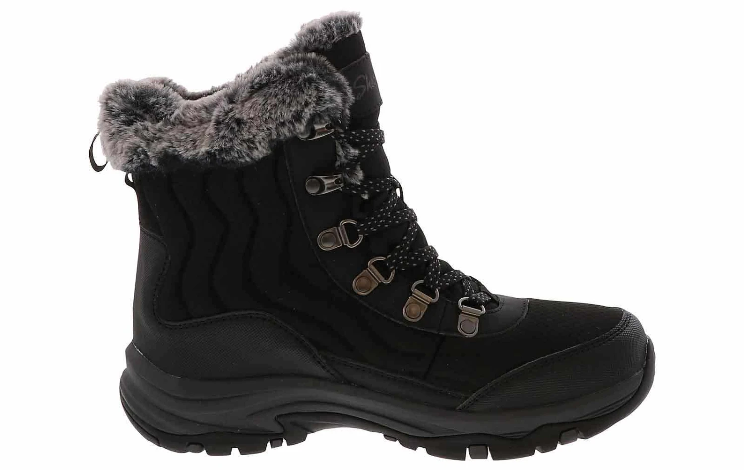 Make a statement with the Skechers Trego Cozy Women’s Snow Boot! This lace-up boot features a waterproof synthetic upper for a supportive fit. The cushioned insole is lined with faux fur to keep you comfortable throughout the day. Step with confidence in the Skechers Trego Cozy Women’s Snow Boot!