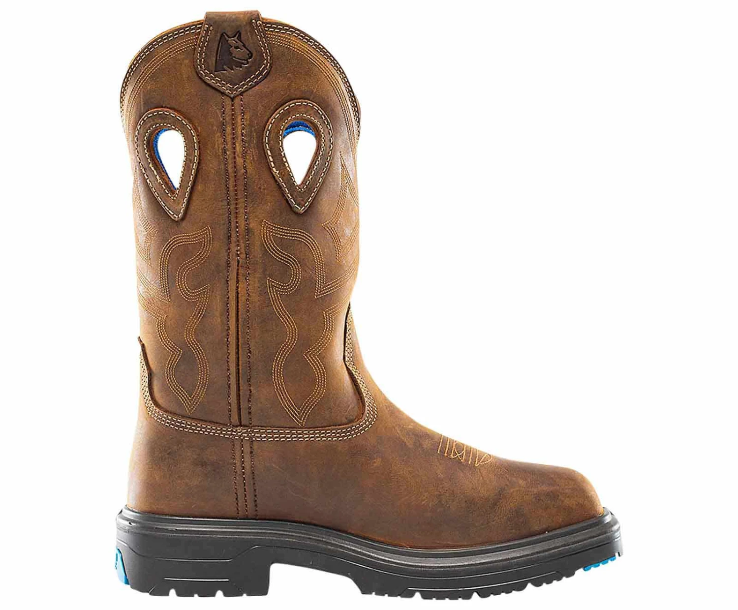 The Steel Blue Heeler Met Men’s Steel Toe Work Boot is a Western style safety boot that is packed with our famous boot technology features. The wide square toe box allows your toes to spread, ensuring improved foot comfort. For easier on and off, the Blue Heeler features a Waterproof elasticated gusset on the inside of the leg seam. Packed with safety features, the Blue Heeler includes a safety Steel Toe Cap which provides premium protection for your toes. A Full-length extra thick insole is included in the boot to offer additional support and comfort.