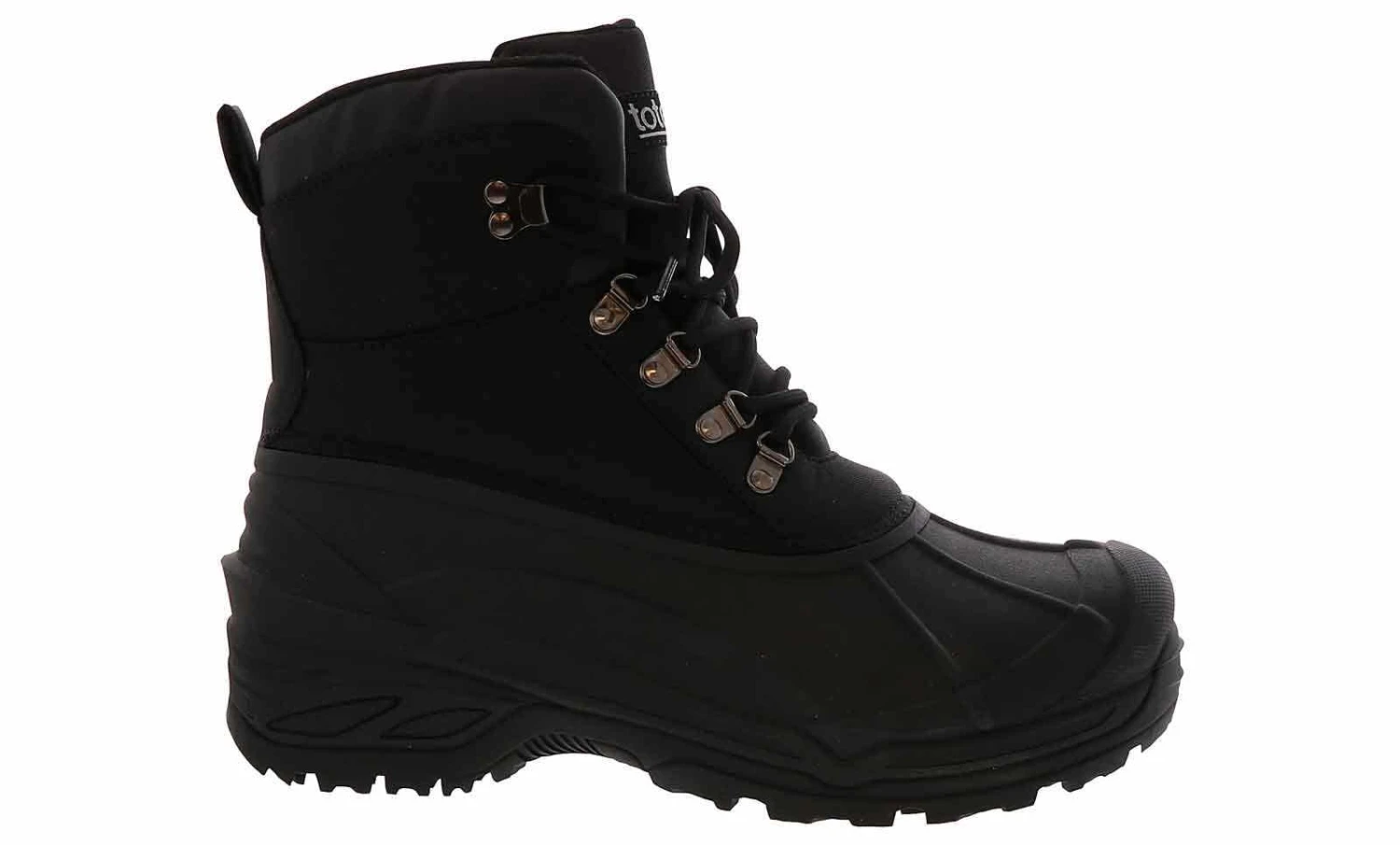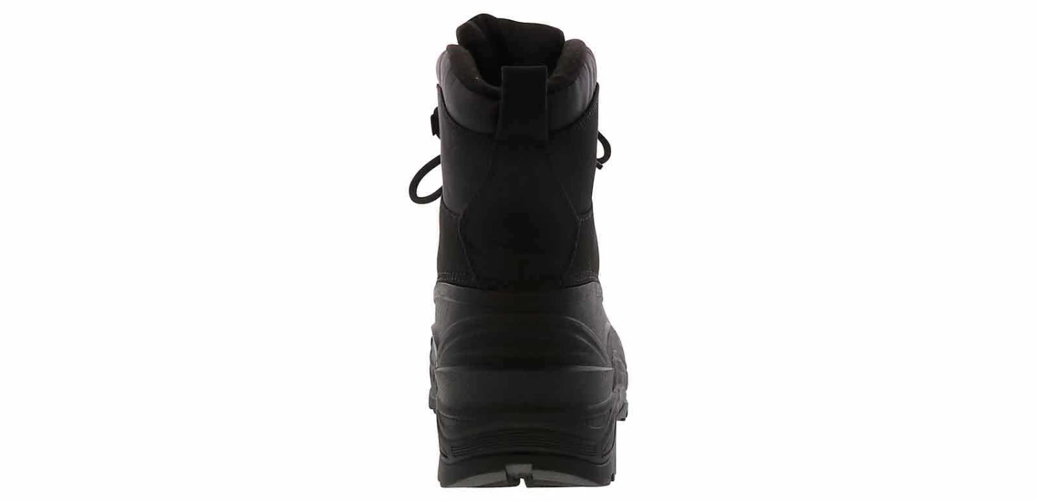 Face the rain or snow wearing the Totes Kecap Men’s Wide-Width Weather Boot! This durable snow boot features a lace-up water-resistant nylon upper with a rubber shell. The padded collar and tongue will keep debris out and give your foot a secure fit. The cushioned insole ensures you will stay comfortable, and the rubber outsole gives traction in wet and icy conditions.