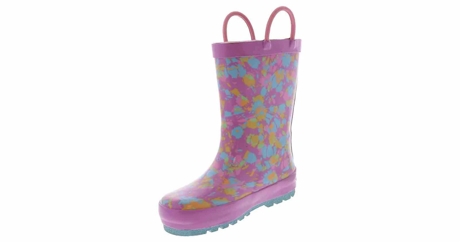 Give her the bright and cheerful rainboots she wants for gloomy days! The Western Chief Sherbert Rainbow Tie Dye Toddler Girls’ (2-12) Rain Boot has a pink outsole and looped handles for ease and comfort. These boots are easy to clean after a day of play. Easy pull-on handles make it quick and easy to get out the door when getting dressed. The cushioned insole adds padding to each of their steps, while the rubber outsole gives enhanced traction on slippery surfaces.